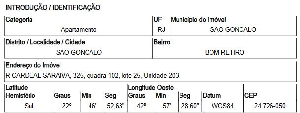 Localização: Apartamento em Endereço: RUA CARDEAL SARAIVA | Bairro: BOM RETIRO | Número: N. 325 APTO. 203 QD 102 SAO GONCALO - RJ