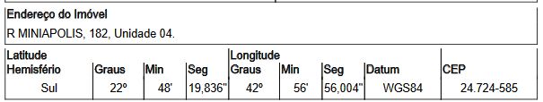 Localização: Casa em Endereço: RUA MINIAPOLIS | Bairro: MARAMBAIA | Número: N. 182 CASA 04 SAO GONCALO - RJ