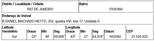. RUA DANIEL MACHADO NETTO,N. 202A QD XVI, LT 17, PAVUNA - CEP: 21520-625, RIO DE JANEIRO - RIO DE JANEIRO