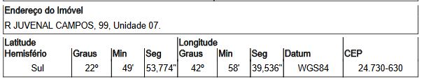 Localização: Casa em Endereço: RUA JUVENAL CAMPOS | Bairro: AMENDOEIRA | Número: N. 99 CASA 07 SAO GONCALO - RJ