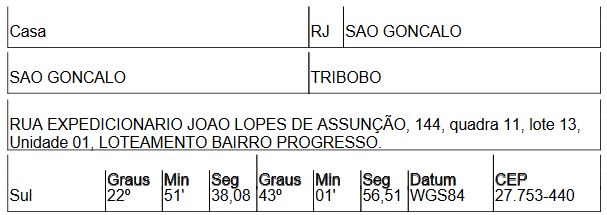 . RUA EXPEDICIONARIO JOAO LOPES DE ASSUNÇÃO,N. 144 QD 11, LT 13, CS 01, TRIBOBO - CEP: 27753-440, SAO GONCALO - RIO DE JANEIRO