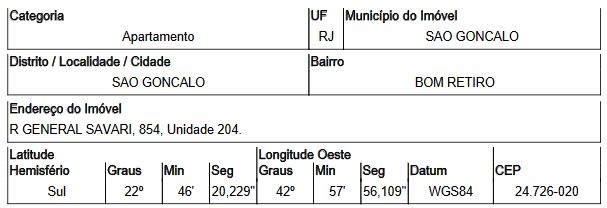 . RUA GENERAL SAVARI,N. 854 APTO. 204, BOM RETIRO - CEP: 24726-020, SAO GONCALO - RIO DE JANEIRO